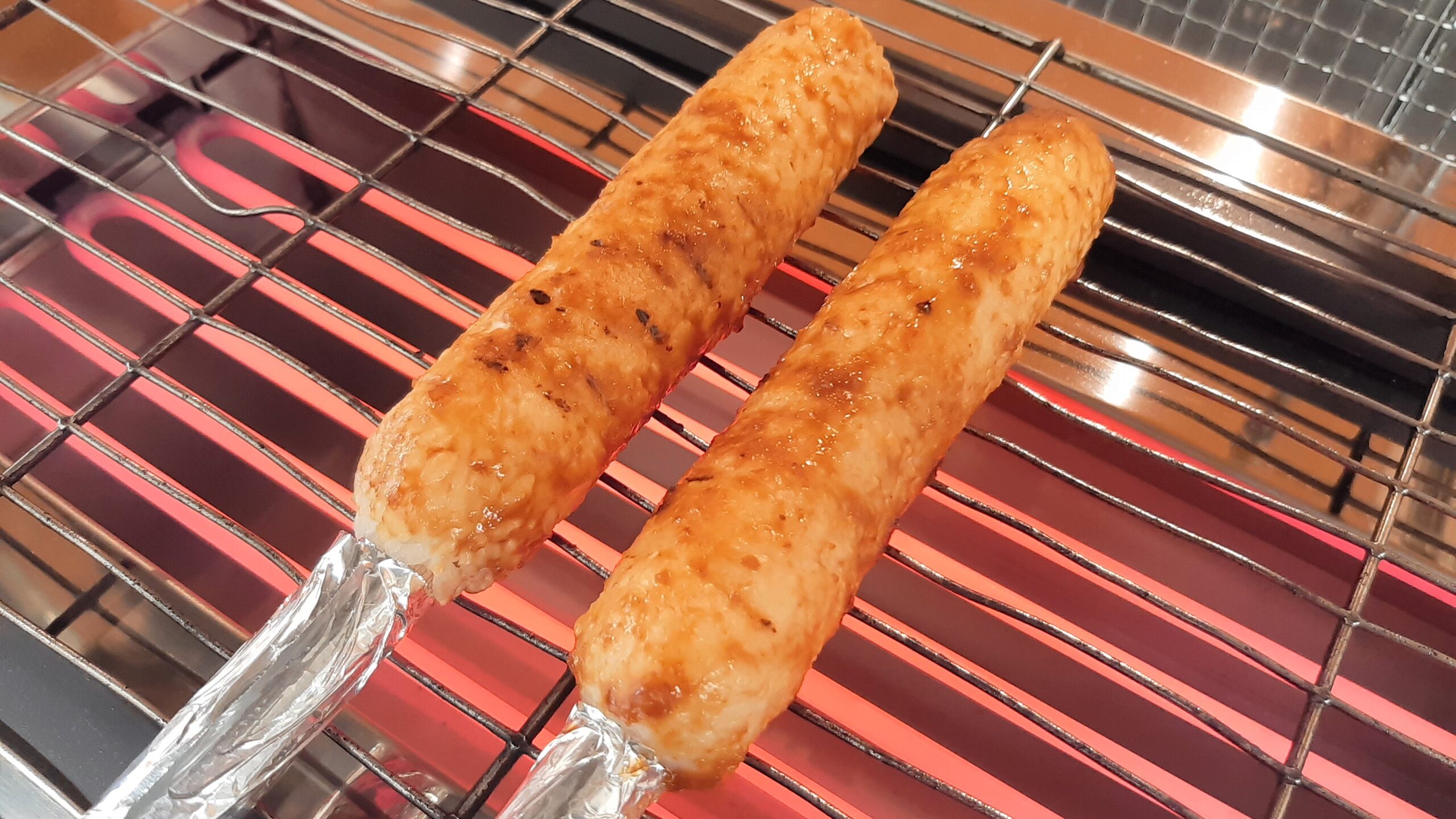 使用するお米は鹿角産あきたこまち。こんがりきつね色に焼いたみそつけたんぽは絶品!