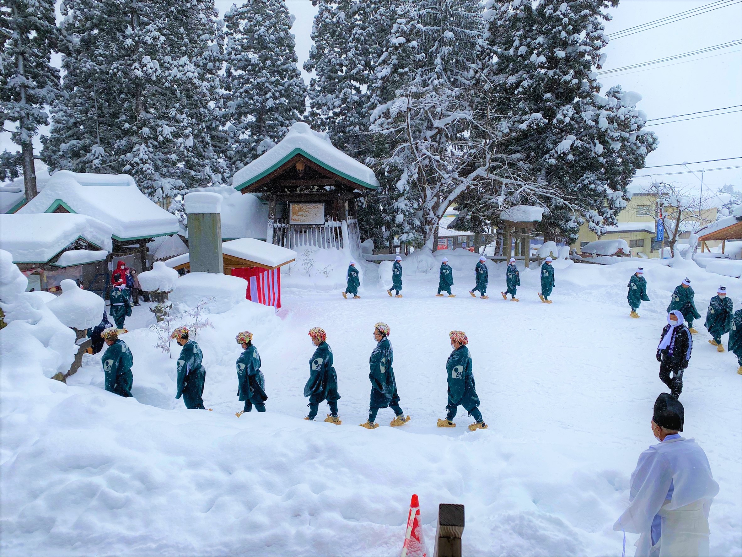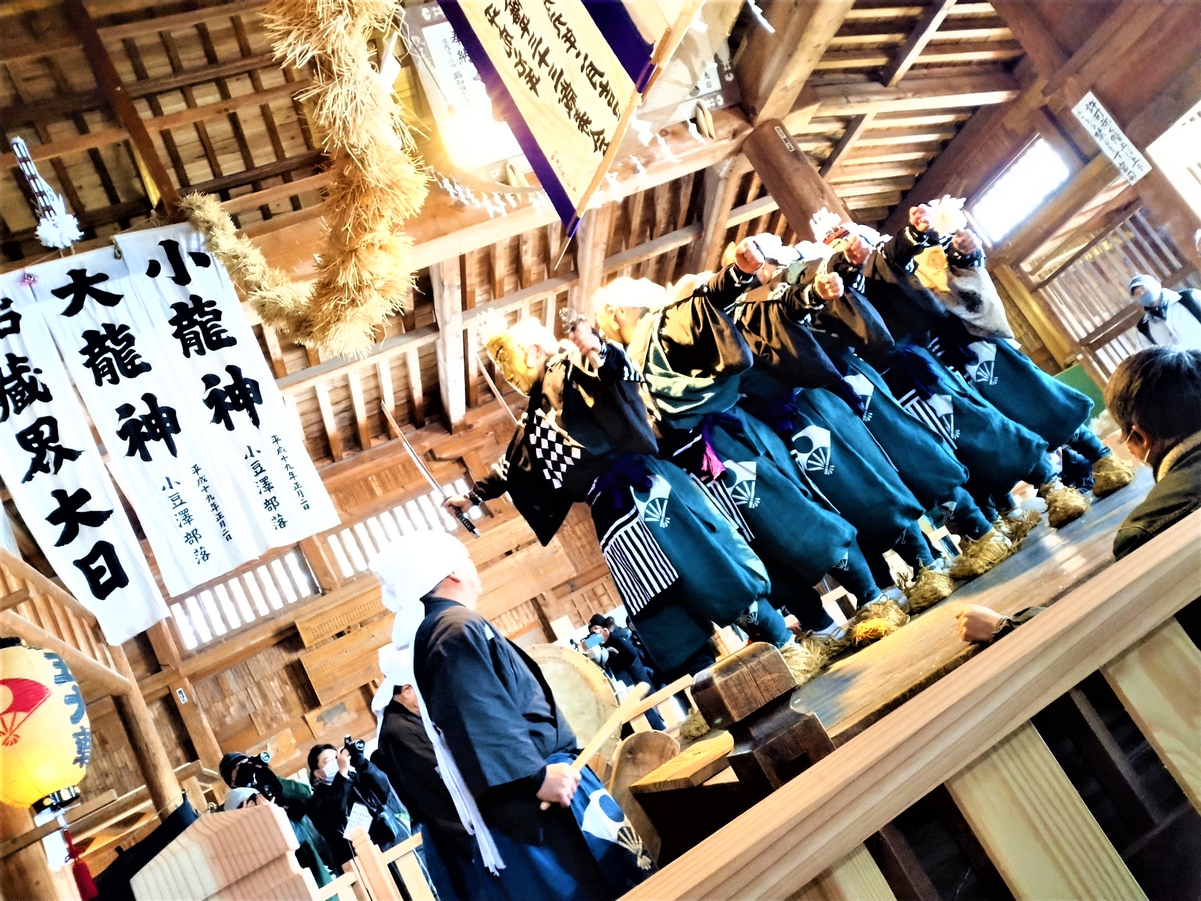 秋田県鹿角市の八幡平小豆沢地区にある大日霊貴神社(オオヒルメムチジンジャ、通称大日堂)では、毎年正月二日に『大日堂舞楽』が奉納されます。